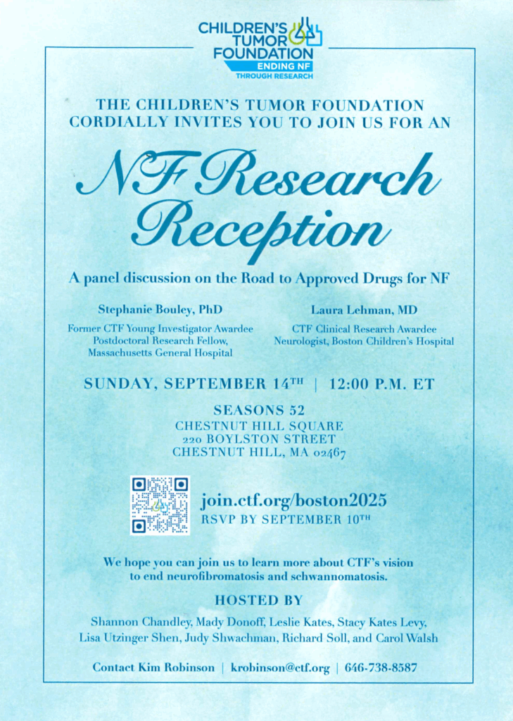 May is NF Awareness Month, a time when those affected by NF1, NF2, and Schwannomatosis work to bring awareness to the public. More information about NF Awareness Month can be found through the Children’s Tumor Foundation here.